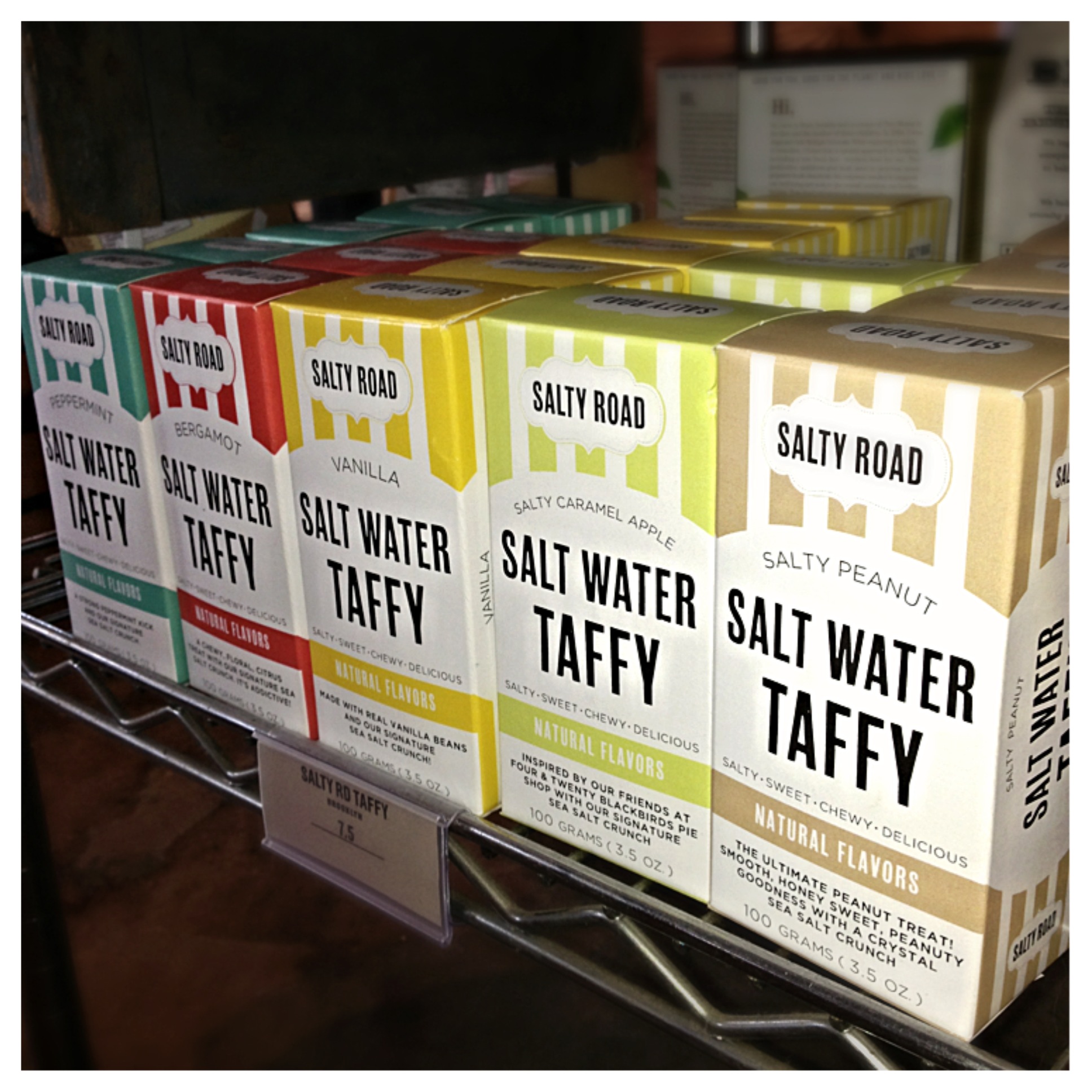 Think of the best salt water taffy you’ve had. Now, forget about it…because you obviously haven’t had one from Salty Road, another company on my October Brooklyn Candy list.