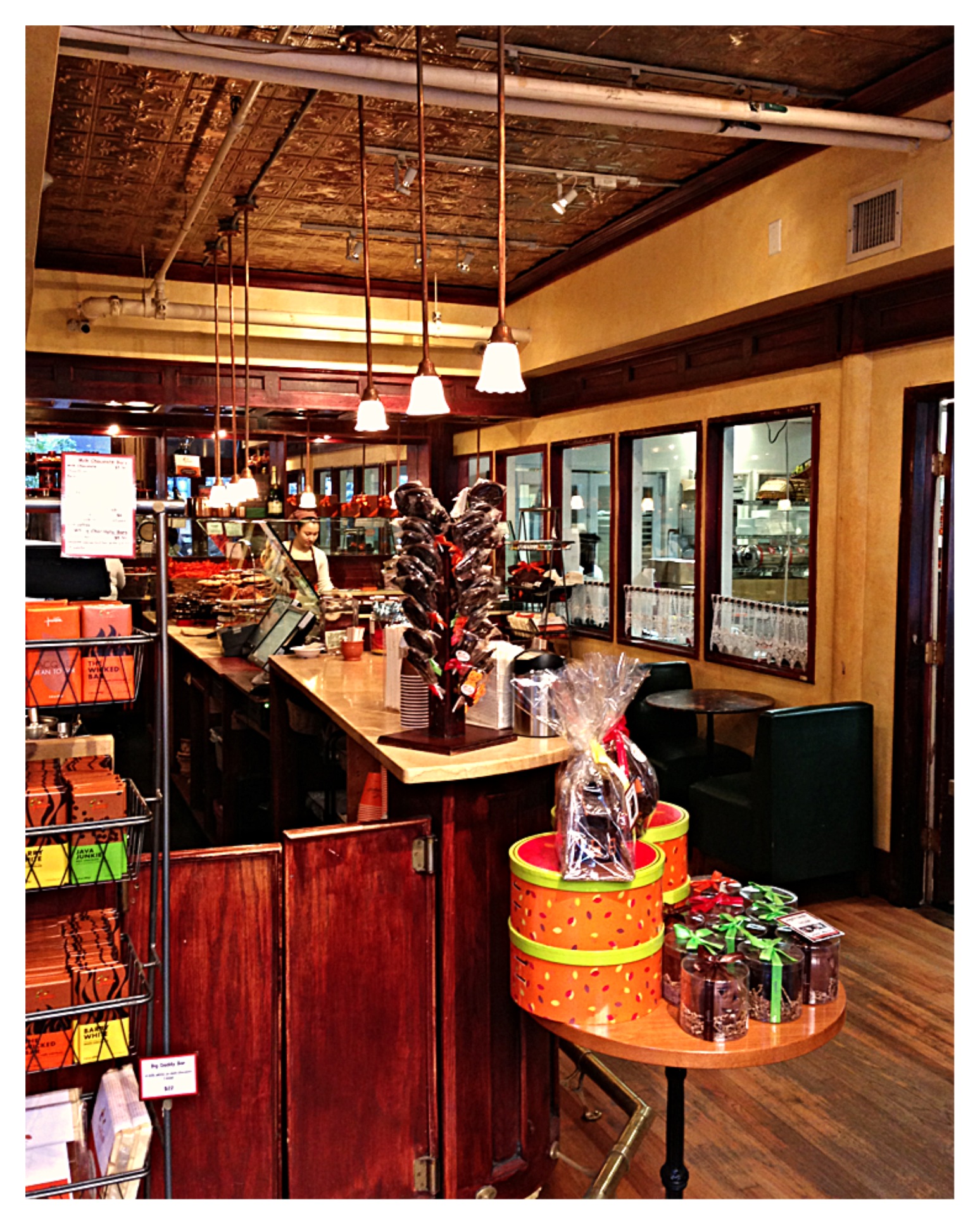 Located in DUMBO, this is the first location of the chocolate shop. Open the door, boom. Chocolate soaked air. It was awesome. There are lots of different confections here, all of which look amazing. I went straight for the individual pieces of chocolate, and asked what the most popular/favored one is.