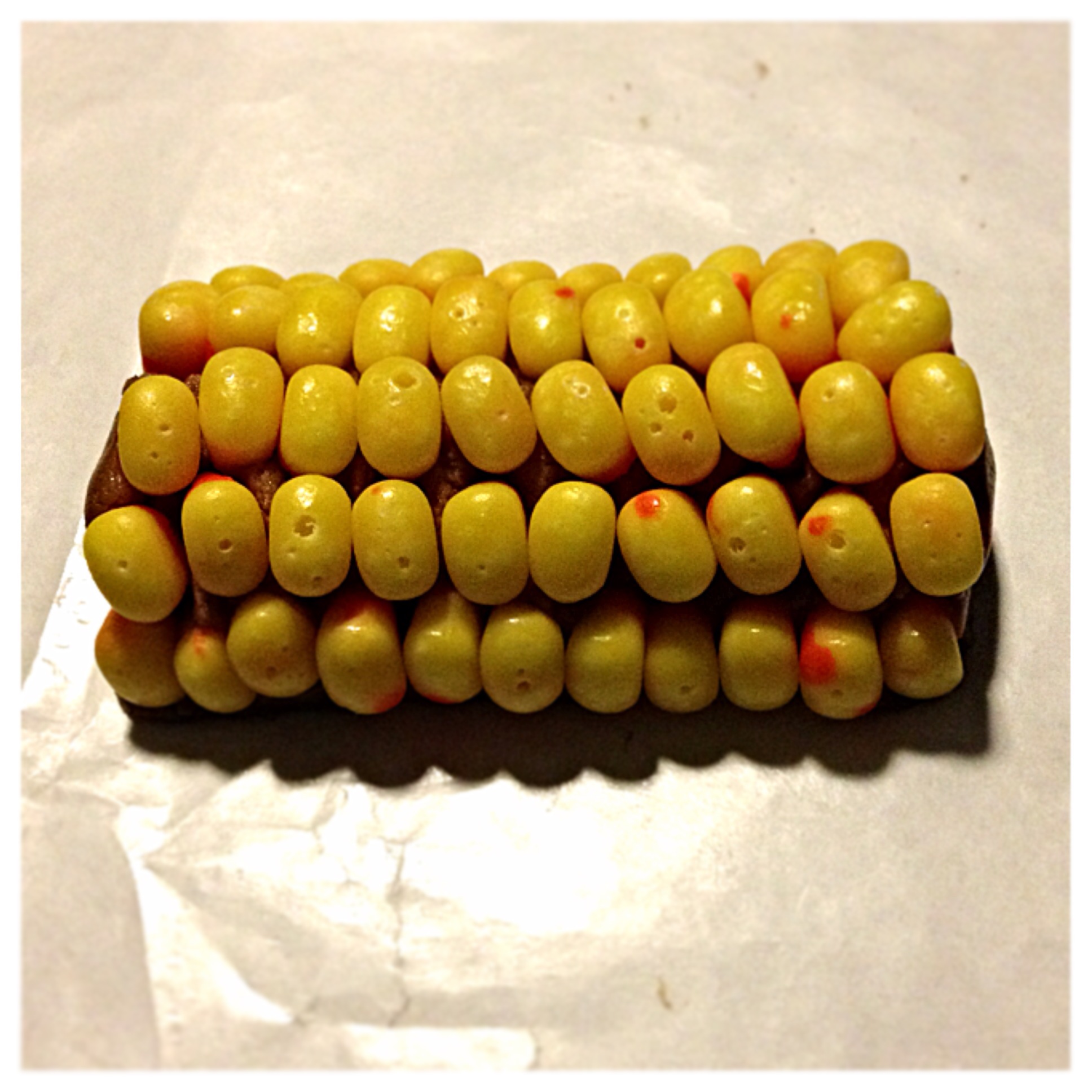 It’s super easy to make. The cob part is made out of cookie dough (I chose a more seasonal approach and did a gingerbread cookie dough), and then, just stick the candy corns in all the way around. Simple, huh?