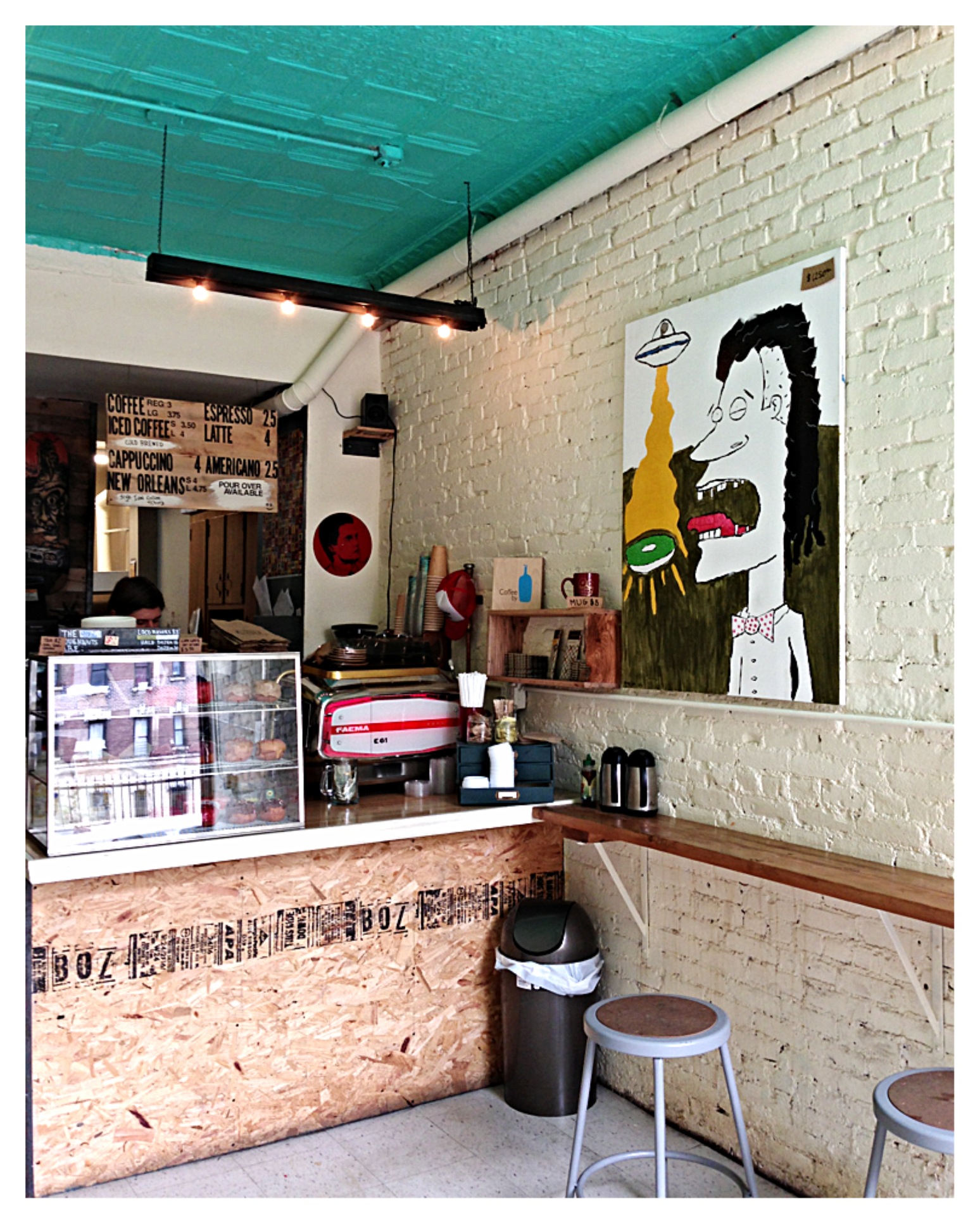 Inside is a simple store with scatterings of the signature cartoon caricatures, selling unique doughnuts and Blue Bottle coffee. These doughnuts are not for the faint of heart, measuring to about the same size of a softball. Luckily, I’m not scared. I chose a couple, the Maple Miso and Pumpkin Cherry.