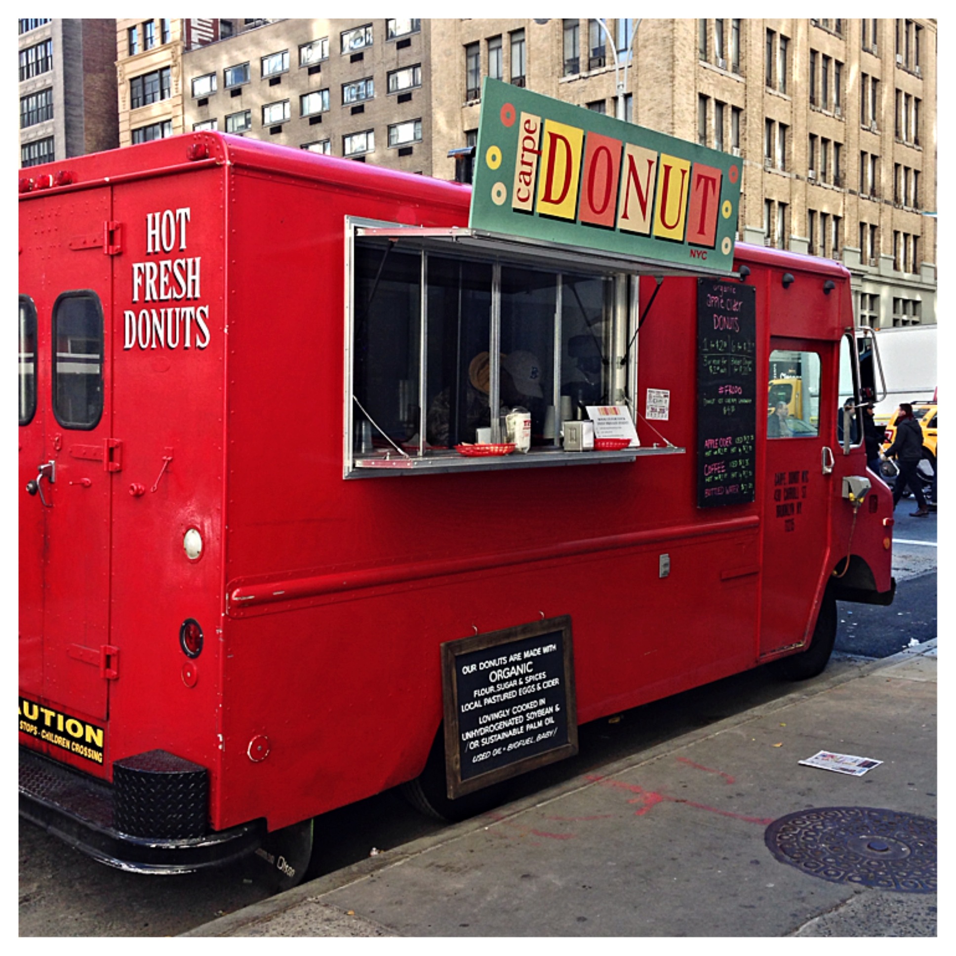 Next stop on my 7 Best Doughnuts In NYC Challenge is Carpe Donut. This husband and wife duo are using all locally sourced, organic, fresh ingredients, creating one type of donut, an Apple Cider Donut. They also have delicious sounding drinks, yes, including Apple Cider, that they’re selling from their food truck. But let’s be honest, I came for the donuts.