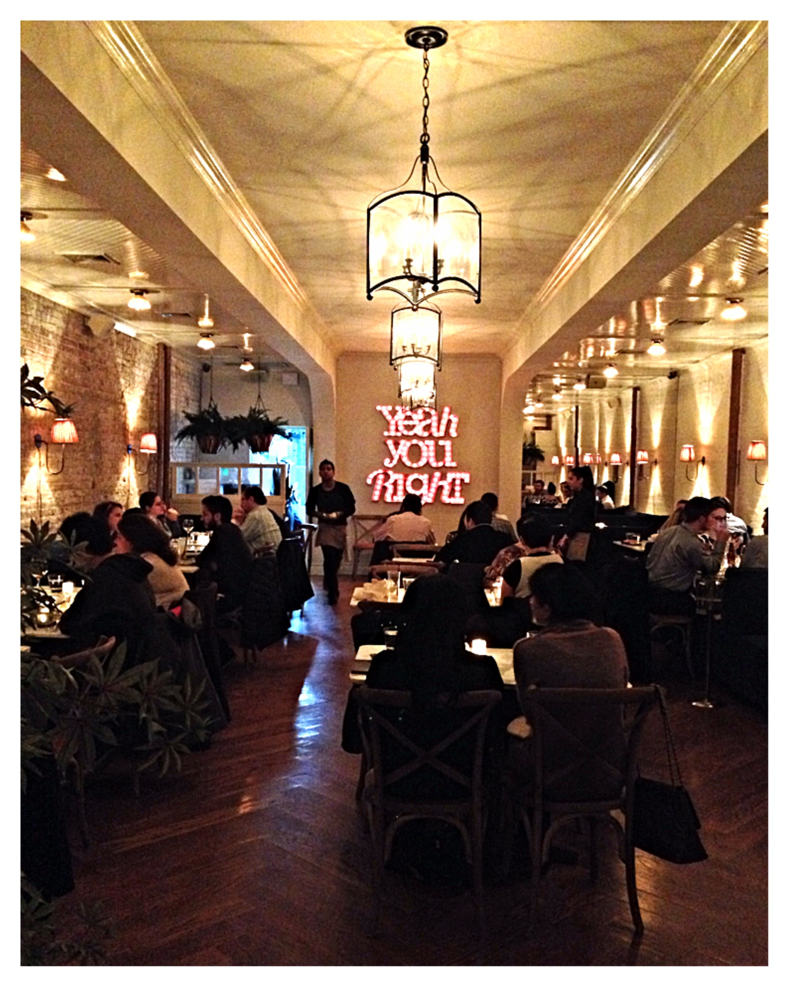 Upon entering, you’re welcomed into the warm and unique aesthetic. The bar and restaurant have exposed brick walls and contemporary light fixtures with a large lighted piece in the very back of the restaurant, luring you in, that reads “Yeah You Right”. Now, just to get it out of the way, the service that night, while totally friendly and nice, was a little scattered. I used to wait tables, so, I know there are always off-nights etc. But, it’s a more casual setting, it isn’t fine dining, so I’m usually a lot more relaxed in cases like this.