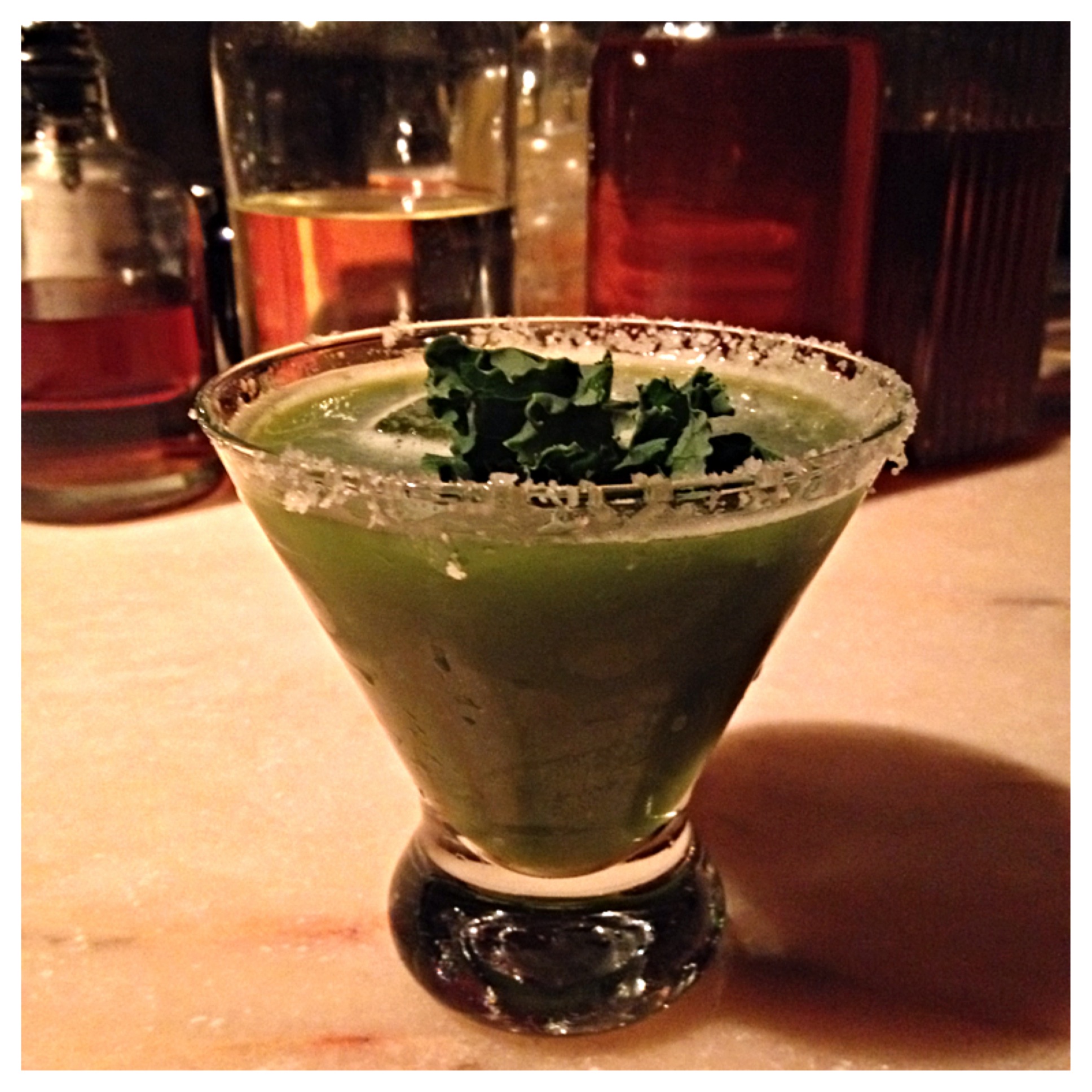 All of the cocktails are broken down into categories paying homage to the apothecary theme, like “Healthy & Beauty”, “Stress Relievers” and “Pain Killers”. I went for Kale In Comparison (Aylesbury DuckVodka, Kale Juice, Pineapple, Ginger, Sea Bean, Lime, Digestive Tincture, Agave). I like to refer to this one as a garden party, you feel like you’re having a juice pressed cocktail. It has a salted rim, but the drink itself is slightly sweet with the freshness and flavor of greens and kale. I can safely say I haven’t had a drink quite like it before, and I loved it.