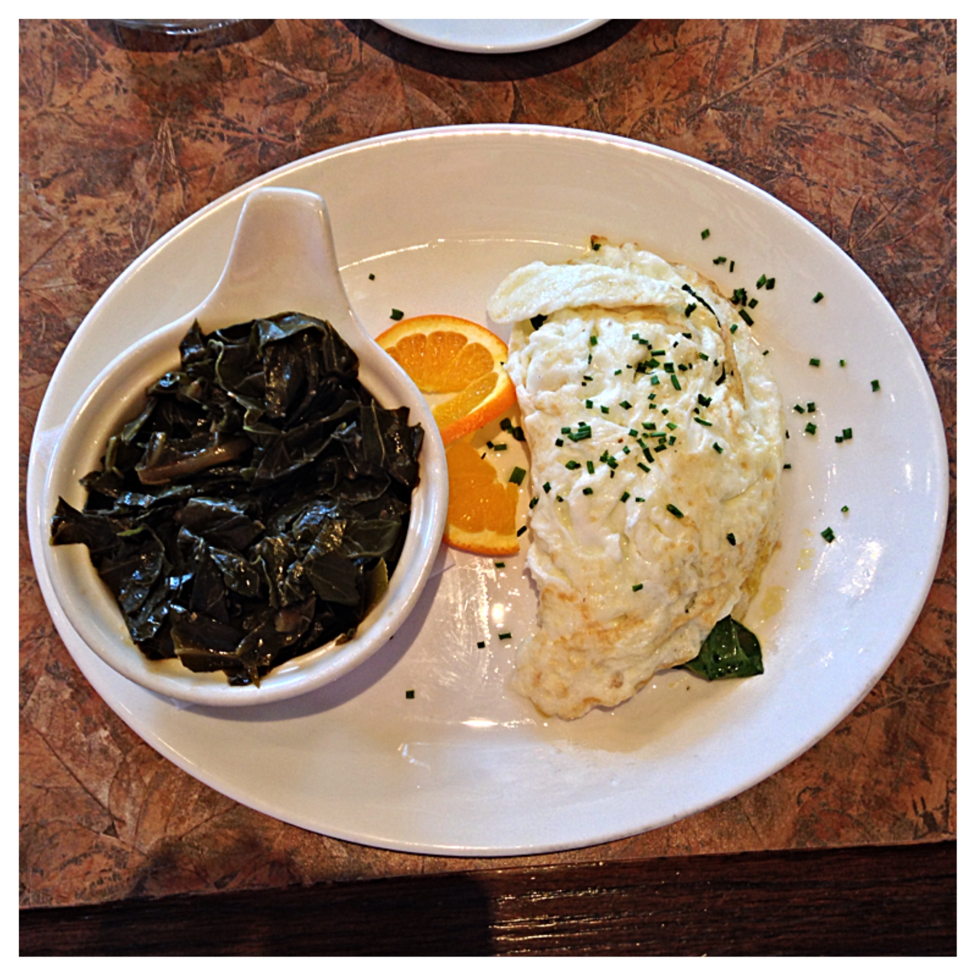 The food is southern inspired and you’ll certainly find grits, gumbo and Po Boys, to name a few. I went for a little classic brunch with a southern twist and got their Wild Mushroom and Spinach Omelet (soufflé omelet sauté spinach, mushroom ragout) with Braised Collard Greens. The omelet was great, light, and fluffy. But my favorite part was definitely the collard greens, great flavor, and just really love collard greens.