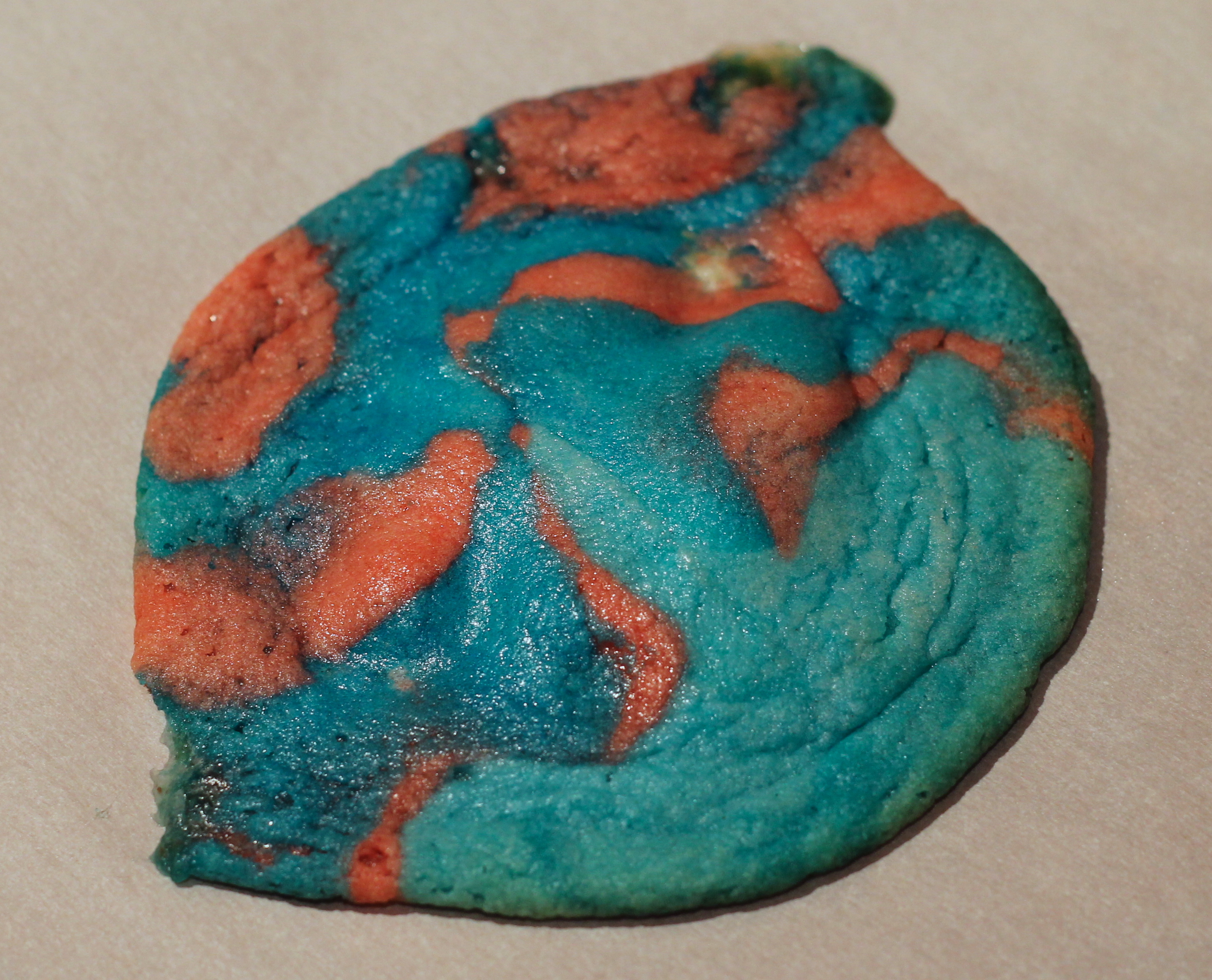 The cookie dough should have all the basic baking instructions on the packaging, but usually you’ll pre-heat your oven to 350 degrees F. Then, this is optional, but if you want to make your cookies more spring like, you can add some food color to the dough to give it some pizazz. Configure it however you’d like, I rolled out the dough into two pieces, blue and pink, and arranged them into one flat piece.