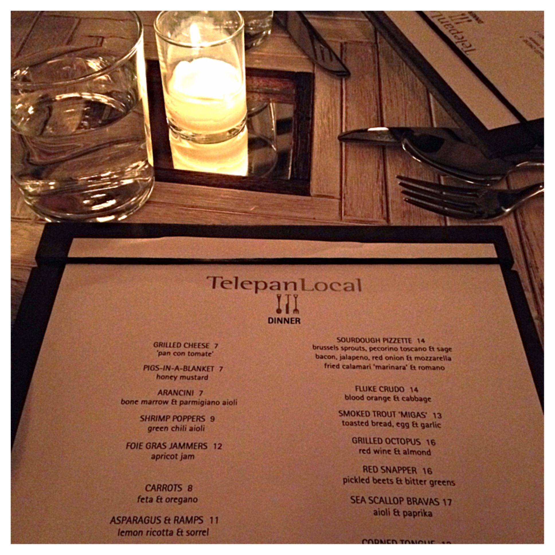 On the quiet path of Greenwich Street, keep your eyes peeled for the unassuming door and entrance that lead to Telepan Local in TriBeCa, because you won’t want to miss it. This restaurant has a really lovely aesthetic, clean, a little woodsy with an emphasis on unique, liberally placed mirrors. Food wise, the restaurant’s focus is on American style, small plates, locally sourced and seasonal food.