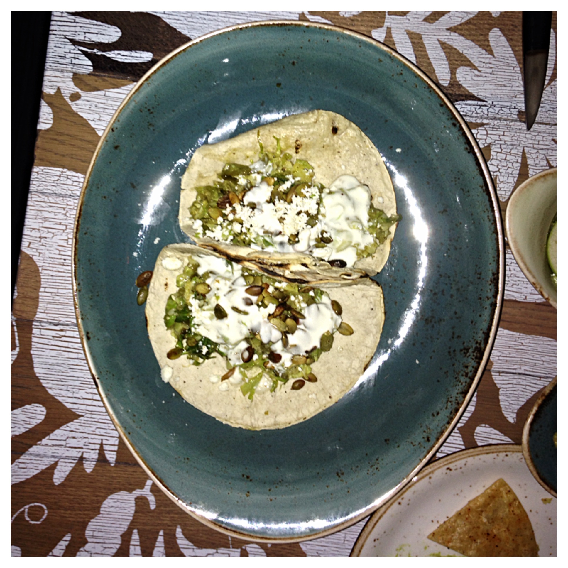 My favorite thing we got was probably their Brussels Sprouts Tacos (spiced pumpkin seeds, roasted poblano chile, cotija cheese, crema fresca). These a generously filled with shredded brussels sprouts and all of its accouterment. There’s a nice light crunch component from the pumpkin seeds (I love pumpkin seeds), and then a rich creaminess from the cheese and creme fraiche. Also clutch, were the corn tortillas. They were warm and soft, yet substantial and strong enough to hold the hefty ingredients without breaking.