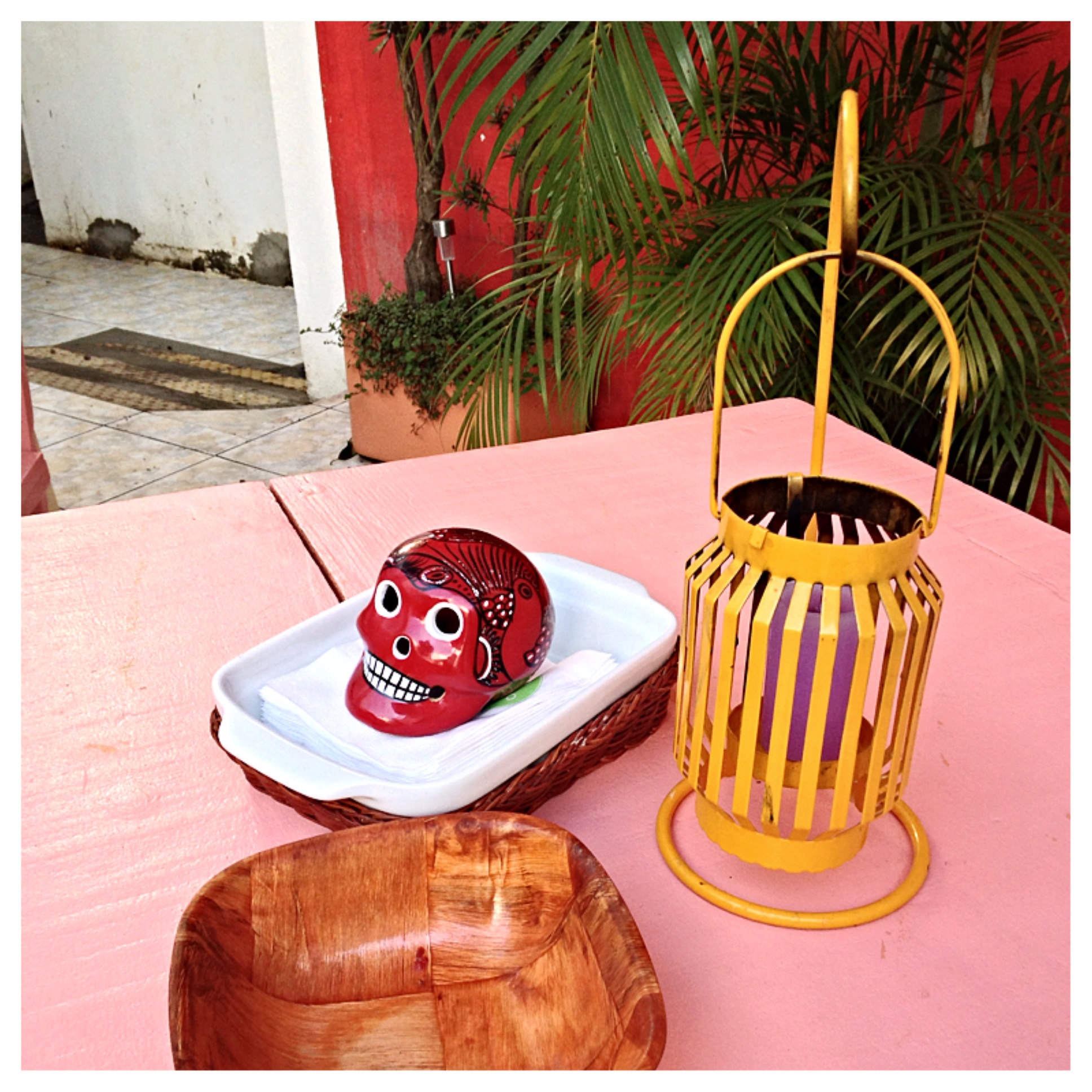 Even the outdoor patio space pays homage to the Mexican roots with vibrant colors and little calaveras on each table.