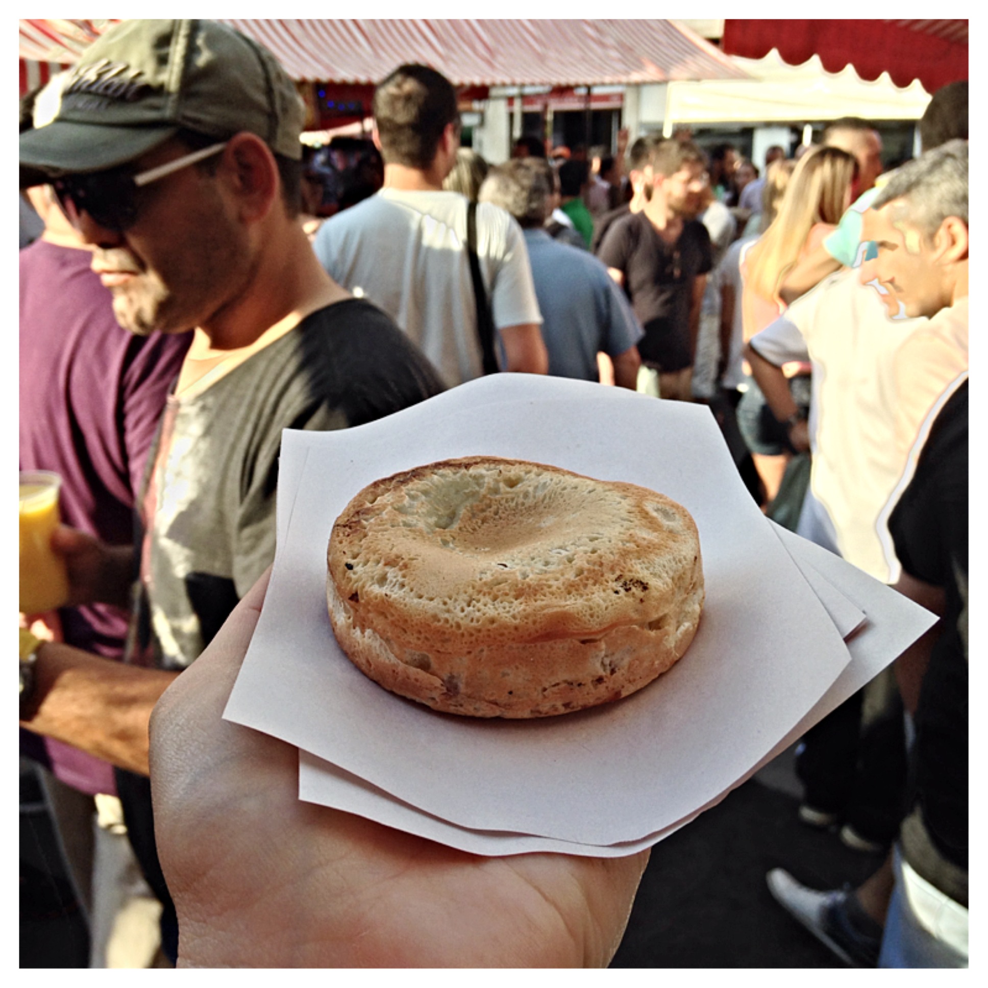 But, there’s a special pocket in my stomach that’s always reserved for desserts. And so, I paid a little visit to one stand, serving Imagawayaki. Here, they’re serving up fresh Imagawayaki (aka Doce de Faijao Azuki) (sweet bean buns). These super affordable treats get handed to you fresh off the stove. And, they’re totally delicious. The bun is light and airy, almost like a hybrid between a doughnut and a pancake. It has a light taste, not quite sweet, not quite savory, leaving it a nice and neutral casing for the sweet bean filling.