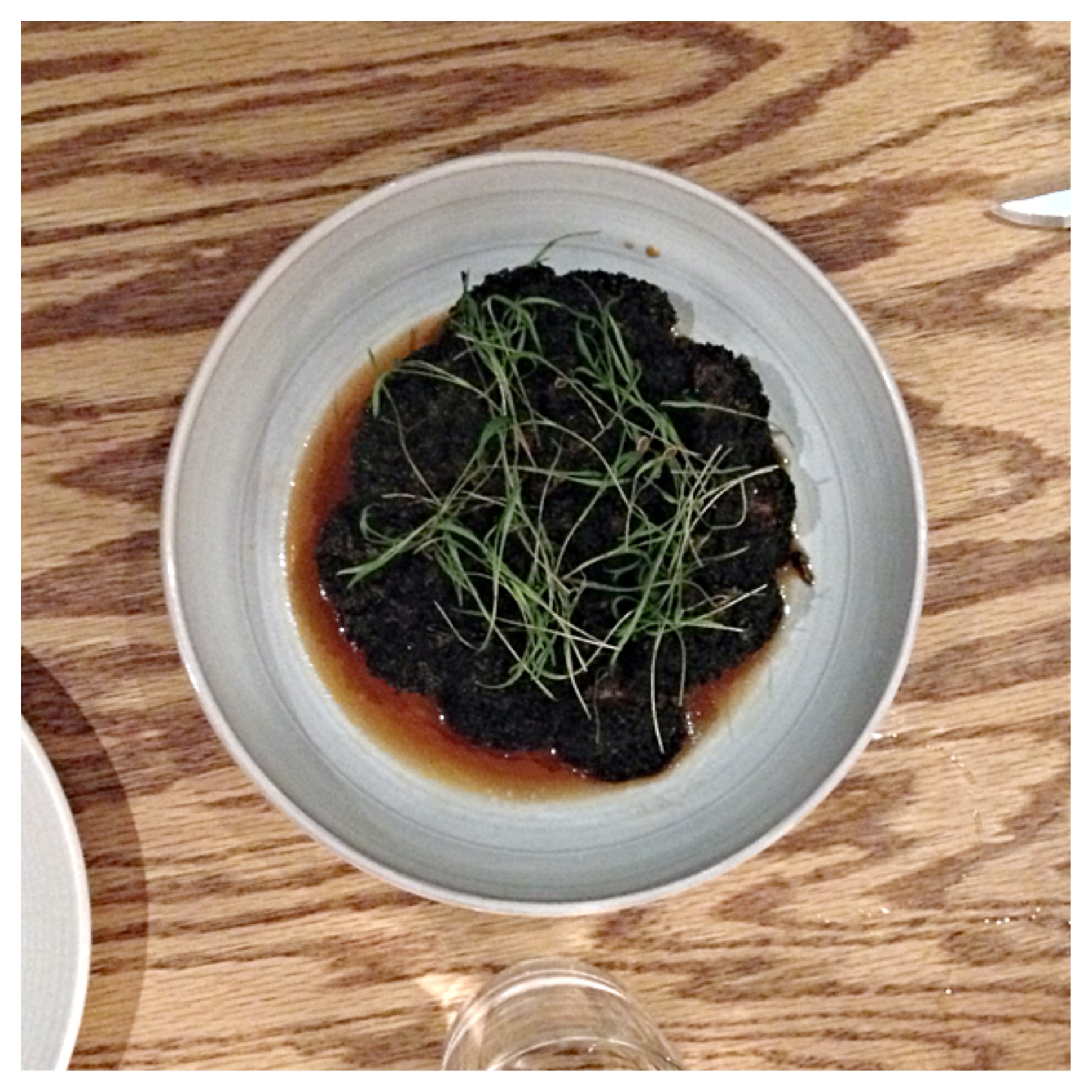Next, was the Octopus (za’atar, olives, pine nuts). The octopus is is served as one piece, with a delicious tahini-like sauce on the plate, confected with pine nuts and topped with the fried olives. By the way, olives should always be fried. The octopus itself was amazing, it was plump, tender, and had a wonderful flavor, which was enhanced by the za’atar.