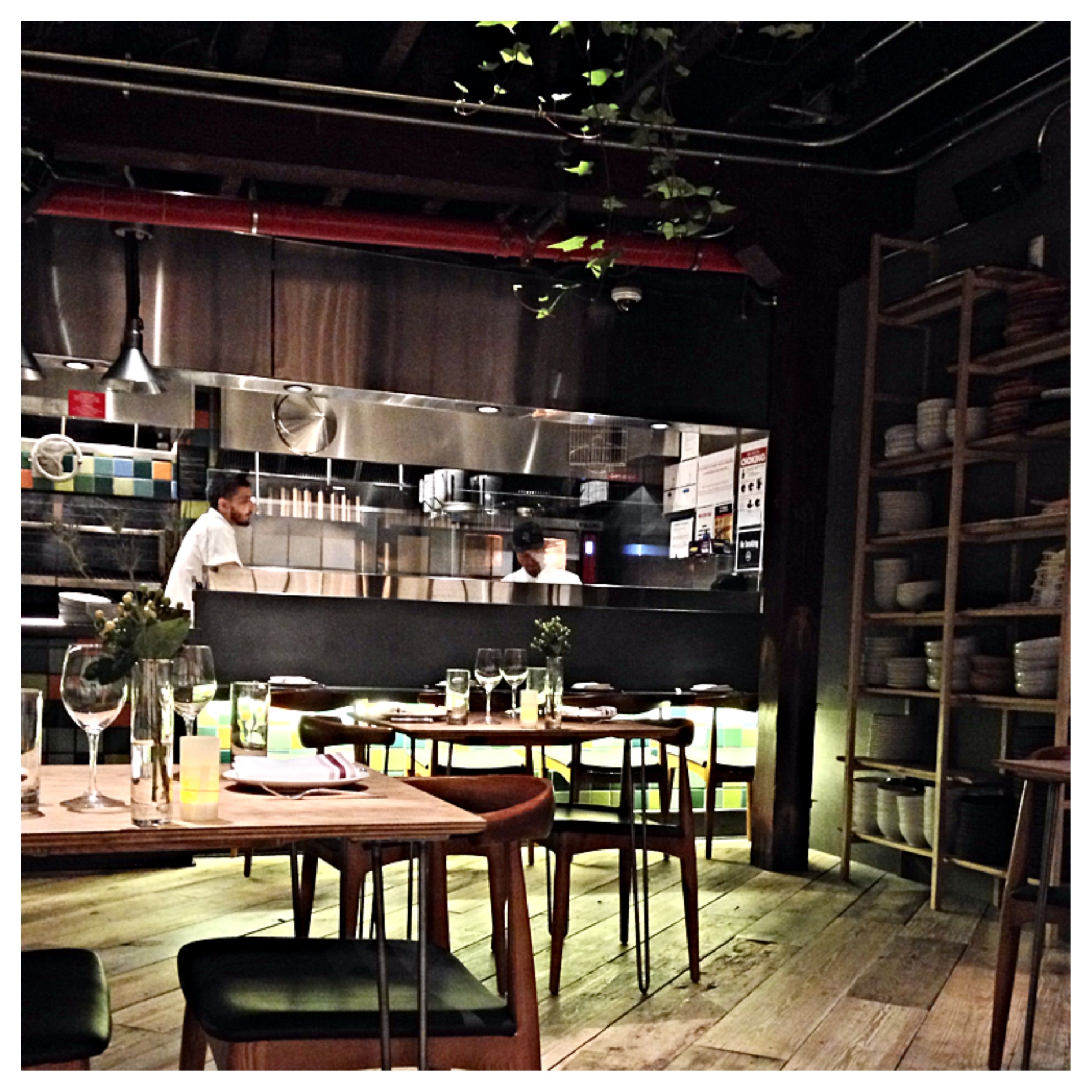 To lessen any confusion on how to get to the restaurant itself, step one, look for Urban Outfitters. Step two, hook a right to the elevator once you enter and hit #3 floor. Alternatively, there are stairs right before the elevator, you can take those too. Hey, you made it! The restaurant is rustic and charming, and…yup, open kitchen. My heart.